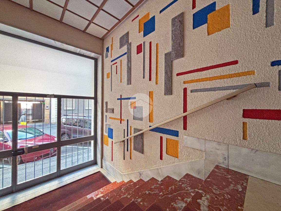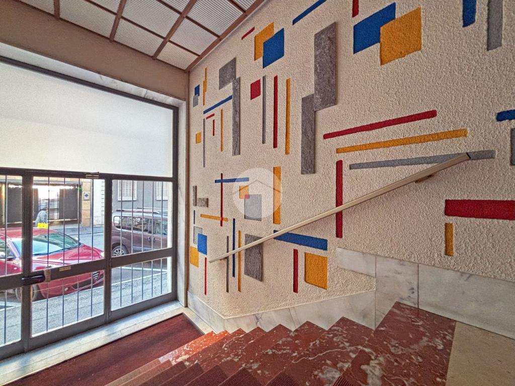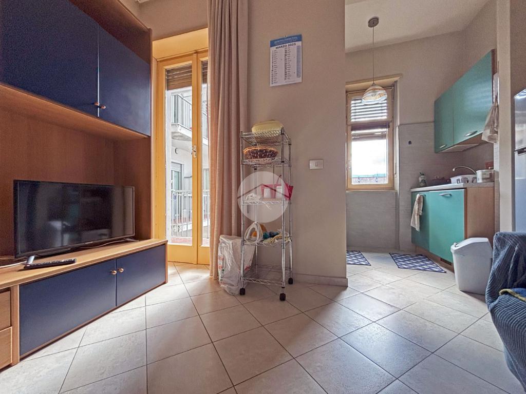Nel centro di Pinerolo, al secondo piano di uno stabile signorile dotato di ascensore, luminoso bilocale in buone condizioni con 2 ampi balconi.